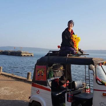 Mad cap adventure driving the length of India in a glorified lawnmower, dressed as a ghostbuster with a giraffe called Philip strapped to the roof.